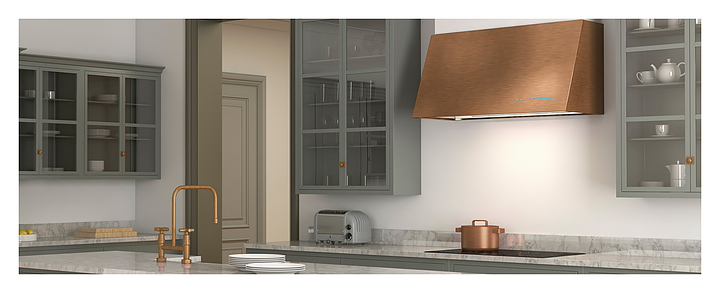Пристенная кухонная вытяжка Pando P-2000/120 COBRE VINTAGE V.1050 ECO предназначена для очистки воздуха от продуктов горения, копоти и запахов в процессе приготовления пищи путем принудительной вентиляции в домашних условиях. Модель оснащена вентилятором с электродвигателем, кабелем питания и кнопочной панелью управления с голубой подсветкой. Корпус в форме прямоугольно ориентированного купола с наклонным фронтом выполнен из высококачественной нержавеющей стали марки AISI304 с сатинированной поверхностью медного оттенка, жироулавливающий фильтр – из нержавеющей стали. В комплект поставки входят набор монтажных креплений, инструкция по эксплуатации, гарантийный талон и заводская упаковка. Функция AirLink доступна только при заказе с совместимой варочной панелью. Особенности:
