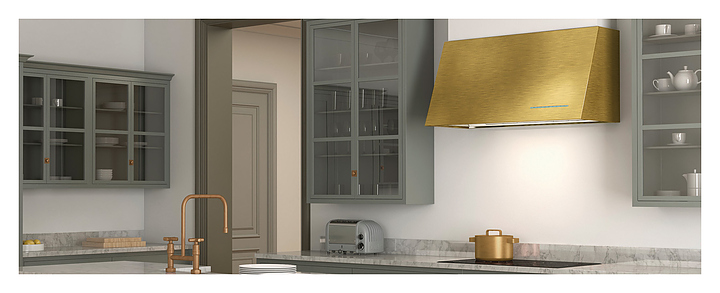 Пристенная кухонная вытяжка Pando P-2000/150 ORO VINTAGE V.1250 ECO предназначена для очистки воздуха от продуктов горения, копоти и запахов в процессе приготовления пищи путем принудительной вентиляции в домашних условиях. Модель оснащена вентилятором с электродвигателем, кабелем питания и кнопочной панелью управления с голубой подсветкой. Корпус в форме прямоугольно ориентированного купола с наклонным фронтом выполнен из высококачественной нержавеющей стали марки AISI304 с сатинированной поверхностью золотистого оттенка, жироулавливающий фильтр – из нержавеющей стали. В комплект поставки входят набор монтажных креплений, инструкция по эксплуатации, гарантийный талон и заводская упаковка. Функция AirLink доступна только при заказе с совместимой варочной панелью. Особенности: