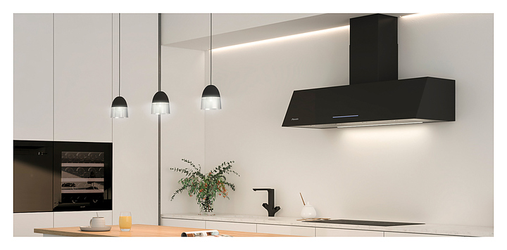 Пристенная кухонная вытяжка Pando P-2010/120 NE MATE V.1050 предназначена для очистки воздуха от продуктов горения, копоти и запахов в процессе приготовления пищи путем принудительной вентиляции в домашних условиях. Модель оснащена вентилятором с электродвигателем, кабелем питания и кнопочной панелью управления с голубой подсветкой. Корпус в форме прямоугольно ориентированного купола с наклонным фронтом выполнен из высококачественной стали с матовым покрытием черного цвета (RAL 9005), жироулавливающий фильтр – из нержавеющей стали. В комплект поставки входят набор монтажных креплений, инструкция по эксплуатации, гарантийный талон и заводская упаковка. Функция AirLink доступна только при заказе с совместимой варочной панелью. Особенности: