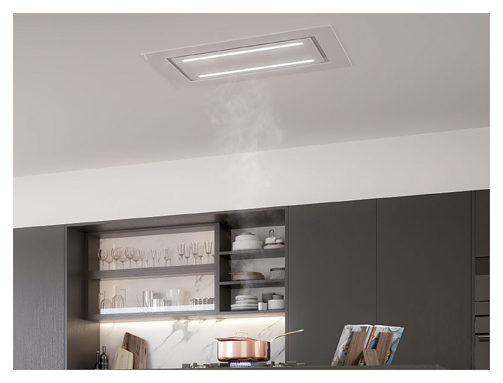 Встраиваемая потолочная кухонная вытяжка Pando E-245/100X60 CR BL V.1130 ECO PLUS предназначена для очистки воздуха от продуктов горения, копоти и запахов в процессе приготовления пищи путем принудительной вентиляции в домашних условиях. Модель оснащена вентилятором с электродвигателем, кабелем питания и откидной дверцей. Лицевая рама и дверца прямоугольной формы выполнены из стекла с белой эмалью, жироулавливающий фильтр – из алюминия. Комплектация: