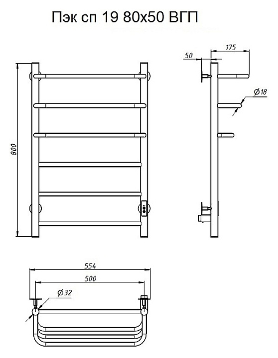 Полотенцесушитель электрический Тругор Пэк сп 19 80х50 см, черный