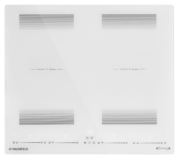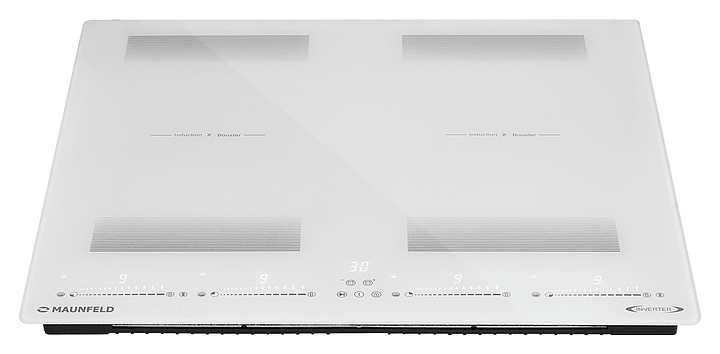 Индукционная варочная панель Maunfeld CVI594SF2WHD Inverter предназначена для приготовления большого ассортимента блюд в домашних условиях. Принцип работы основан на непосредственном нагреве металлической посуды создаваемыми высокочастотным магнитным полем индуцированными вихревыми токами. Модель оснащена 4 варочными зонами различной мощности, кабелем питания, сенсорной панелью управления и 5 светодиодными цифровыми дисплеями с красной подсветкой индикации. Рабочая поверхность выполнена из высококачественной износостойкой стеклокерамики белого цвета.