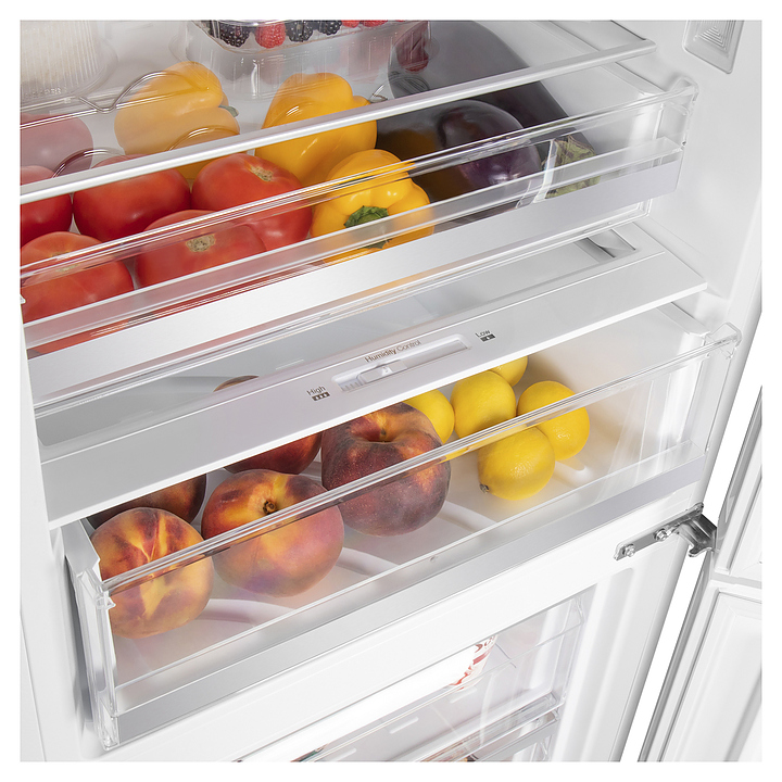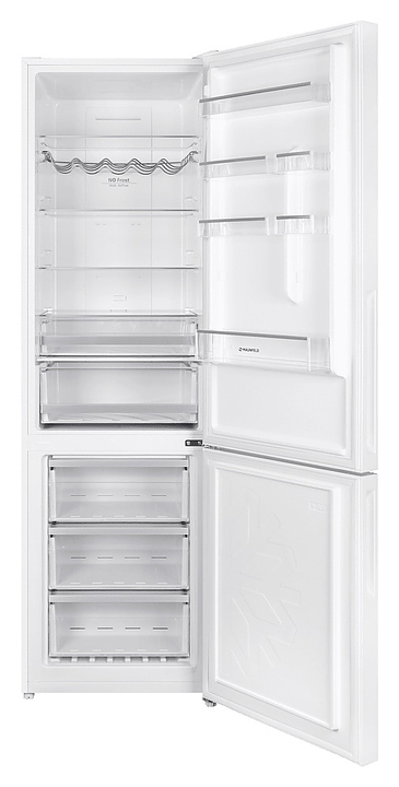 Холодильник Maunfeld MFF200NFW Inverter предназначен для охлаждения, замораживания, кратковременного и длительного хранения пищевых продуктов и напитков в гостиничных комплексах, офисах, а также домашних условиях. Модель оснащена холодильной камерой сверху, морозильной камерой снизу, правосторонними перенавешиваемыми распашными дверьми, кабелем питания с евровилкой и расположенной на верхней двери сенсорной панелью управления с 2 цифровыми дисплеями. Фасад выполнен из стали с покрытием белого цвета и полным остеклением закаленным стеклом без винтового крепежа, боковины – из стали с покрытием в цвет фасада, внутренняя облицовка камер – из белого антибактериального пластика, плоские полки – из прозрачного закаленного стекла, навесные полки – из прозрачного пластика, ящики – из белого пластика с прозрачным фронтом, ящики и полки декорированы окантовками серебристого оттенка, упаковка – из гофрокартона, полимерной пленки и полистирола.