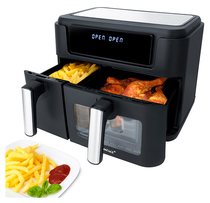 Аэрофритюрница Steba HF 9500 DUO предназначена для приготовления различных продуктов без масла в частных домах и квартирах. Модель оснащена дисплеем, прозрачным смотровым окном и внутренней подсветкой камеры. Горячий воздух равномерно распределяет тепло по всей камере. Элементы дизайна выполнены из нержавеющей стали. Особенности: