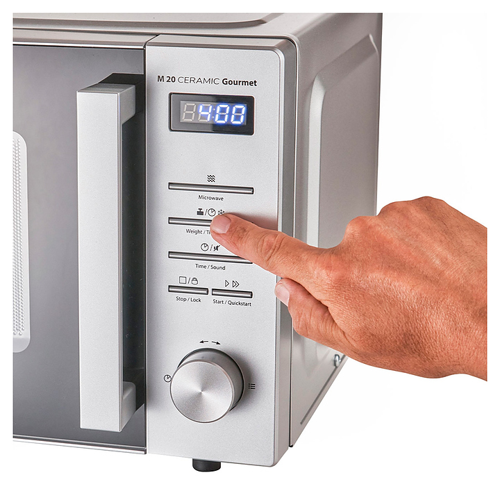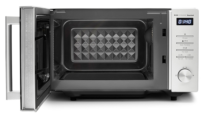 Микроволновая печь CASO M 20 Ceramic Gourmet предназначена для разогрева, размораживания и приготовления продуктов в частных домах, квартирах, отелях и офисах. Модель оснащена светодиодным дисплеем с часами, ручкой управления и внутренней LED-подсветкой. Задняя стенка камеры имеет ромбовидные формы для более эффективного распределения энергии. Корпус выполнен из стали. Особенности: