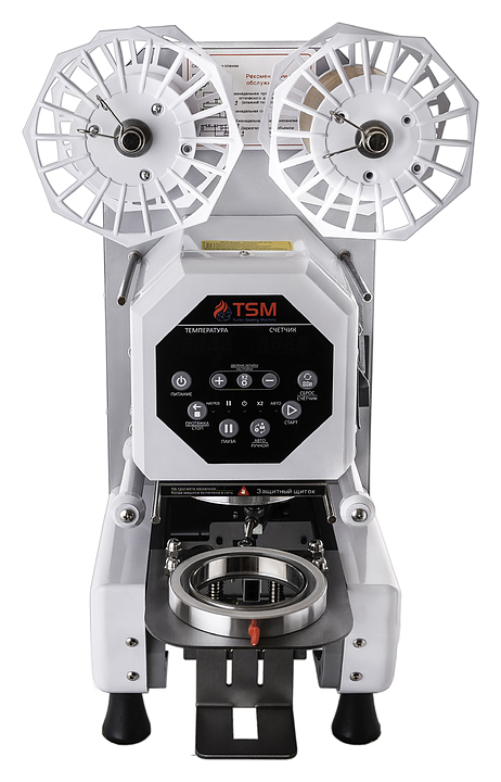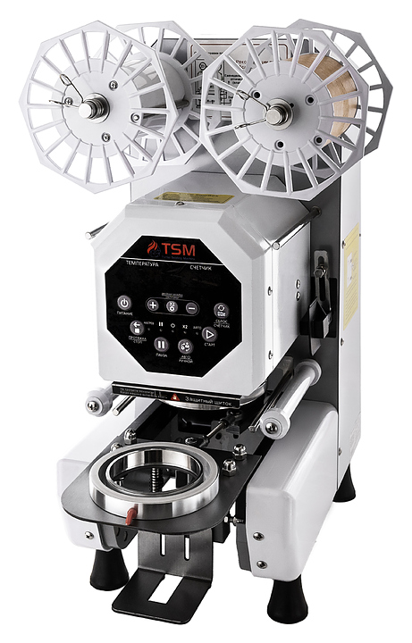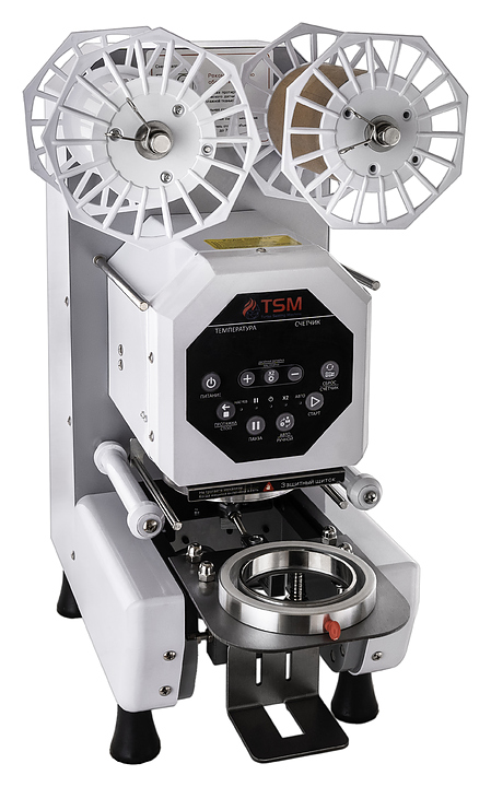 Автоматический запайщик TSM Q8-90/95 используется на предприятиях пищевой промышленности, общественного питания и торговли для герметичного запечатывания термосвариваемой пленкой круглых стаканов с горячими и холодными напитками, готовыми блюдами, полуфабрикатами, фруктами и другой пищевой продукцией. Модель оснащена выдвижной рабочей матрицей, панелью управления с нажимными функциональными кнопками, светодиодными лампами и цифровыми дисплеями индикации. Корпус выполнен из стали с антикоррозийным покрытием белого цвета, направляющие – из нейлона, ножи – из высококачественной японской стали. В комплект поставки входят 3 сменные матрицы различного диаметра. Особенности: