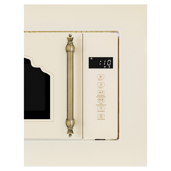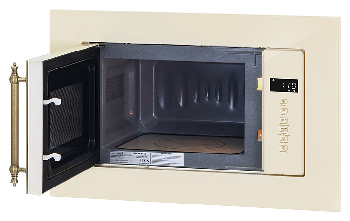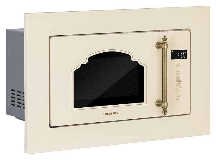 Встраиваемая микроволновая печь Hiberg VM 6502 YR предназначена для приготовления пищи, подогрева готовых блюд и ингридиентов, а также размораживания полуфабрикатов в офисах, гостиничных комплексах и домашних условиях. Модель оснащена камерой с кварцевым грилем, левосторонней распашной дверью с фигурным смотровым окном и вертикальной трубчатой рукояткой, кабелем питания с вилкой, расположенными в правой части фронта сенсорной панелью управления и светодиодным цифровым дисплеем с белой подсветкой индикации. Корпус выполнен из стали, фронтальные панели с полным остеклением без винтового крепежа закаленным стеклом бежевого оттенка, дно камеры – из керамики, внутренняя облицовка камеры высокотехнологичным, устойчивым к механическим повреждениям и термостойким покрытием P-coating легкой очистки, поворотный стол – из ударопрочного стекла, рукоятка – из металла с поверхностью цвета латуни и декоративными фигурными наконечниками. В комплект поставки входят высокая круглая решетка для гриля, набор крепежа, инструкция по эксплуатации, гарантийный талон и заводская упаковка. Особенности: