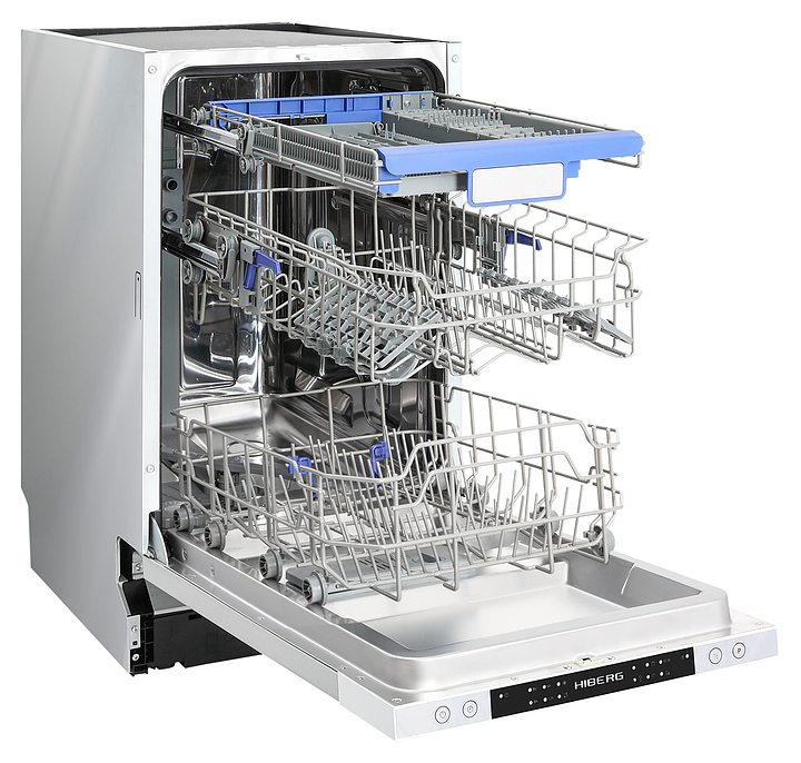 Встраиваемая посудомоечная машина Hiberg I46 1030предназначена для гигиенической обработки и последующей сушки различной посуды в гостиничных комплексах и домашних условиях. Модель оснащена камерой с откидной дверью с интегрированной рукояткой, верхним и нижним моечными рукавами, дозаторами моющих и ополаскивающих средств, устройством умягчения воды, кабелем питания с евровилкой, расположенной на верхнем торце двери панелью управления с функциональными нажимными клавишами и светодиодными сигнальными лампами индикации. Внутренняя облицовка камеры и двери выполнена из высококачественной нержавеющей стали, корпус с поверхностью цвета нержавеющей стали, панель управления – из полимера черного цвета.