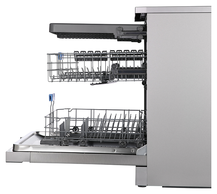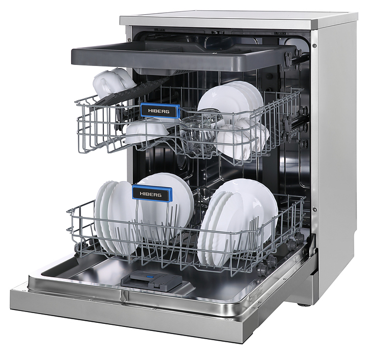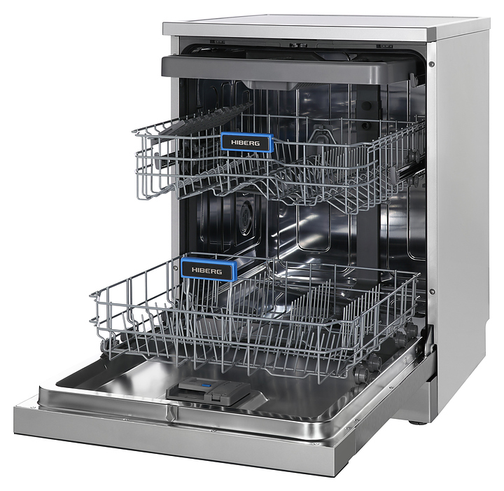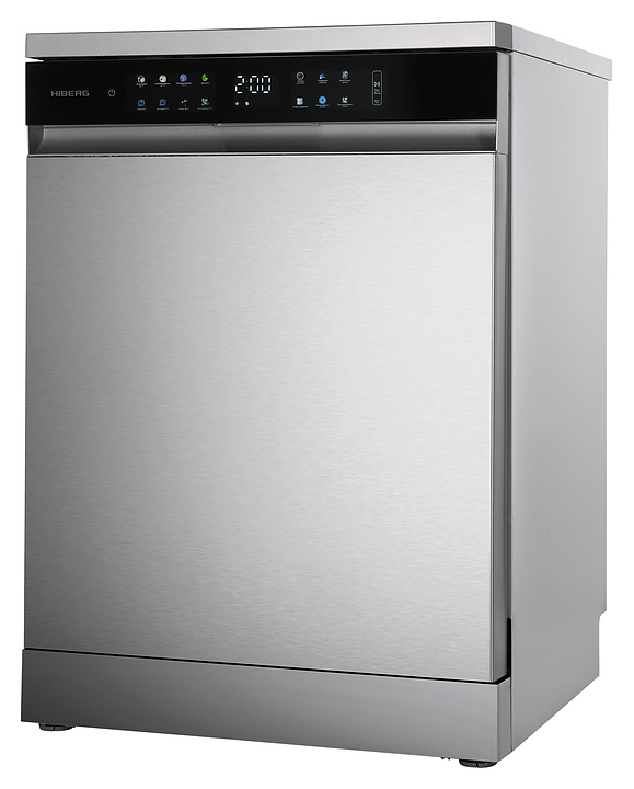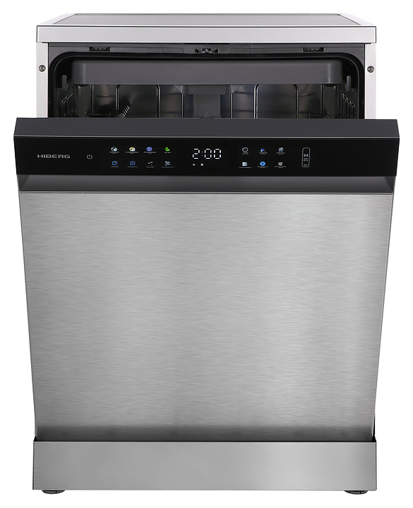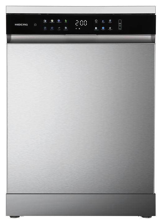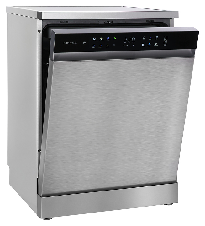 Посудомоечная машина Hiberg F68 1530 LХ предназначена для гигиенической обработки и последующей сушки различной посуды в гостиничных комплексах и домашних условиях. Модель оснащена камерой с откидной дверью с длинной горизонтальной рукояткой, верхним разбрызгивателем, средним и нижним моечными коромыслами, дозаторами моющих и ополаскивающих средств, устройством умягчения воды, кабелем питания с евровилкой, расположенной в верхней части фронта двери панелью управления с функциональными сенсорными клавишами, цветными иконками программ, светодиодными сигнальными лампами и цифровым дисплеем с белой подсветкой индикации. Внутренняя облицовка камеры и двери выполнена из высококачественной нержавеющей стали, корпус с поверхностью цвета нержавеющей стали, панель управления с черной глянцевой поверхностью.