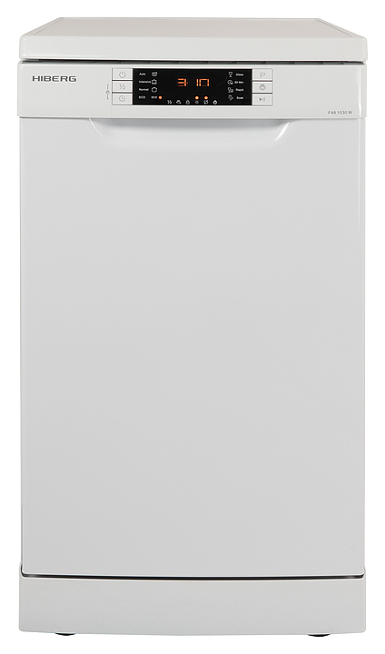 Посудомоечная машина Hiberg F48 1030 W предназначена для гигиенической обработки и последующей сушки различной посуды в гостиничных комплексах и домашних условиях. Модель оснащена камерой с откидной дверью с горизонтальной рукояткой, верхним и нижним моечными коромыслами, дозаторами моющих и ополаскивающих средств, устройством умягчения воды, кабелем питания с евровилкой, расположенной в верхней части фронта двери панелью управления с функциональными сенсорными клавишами, светодиодными сигнальными лампами и цифровым дисплеем с оранжевой подсветкой индикации. Внутренняя облицовка камеры и двери выполнена из высококачественной нержавеющей стали, корпус с поверхностью белого цвета, панель управления с черной глянцевой поверхностью.