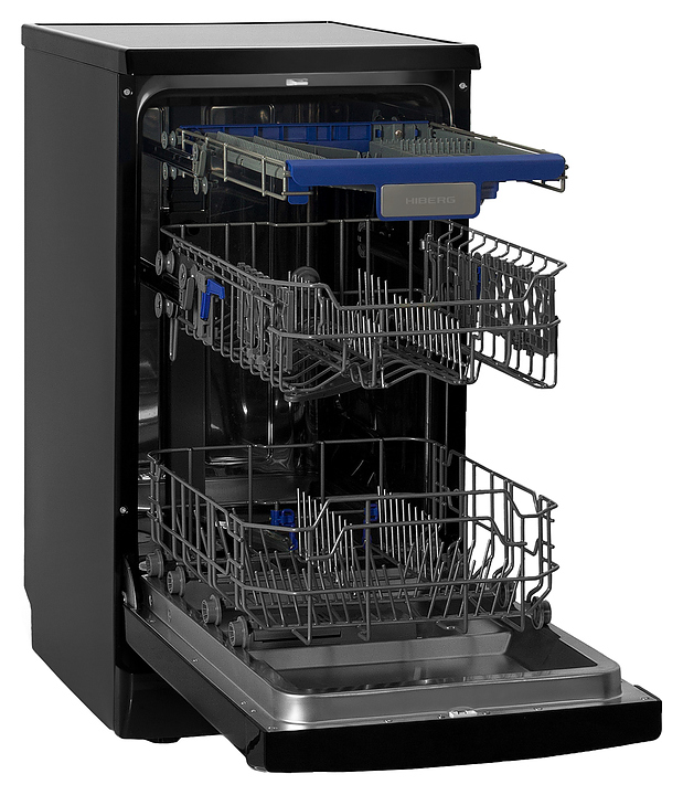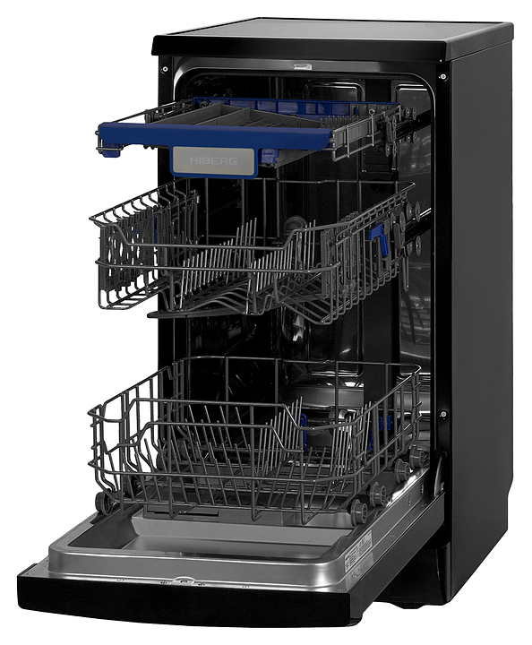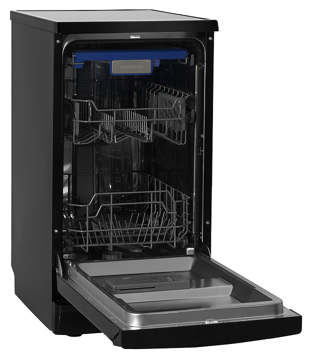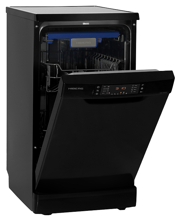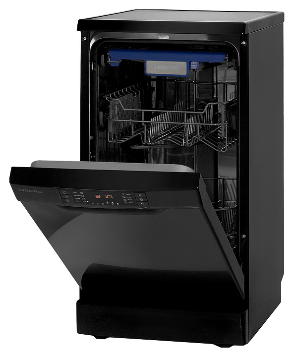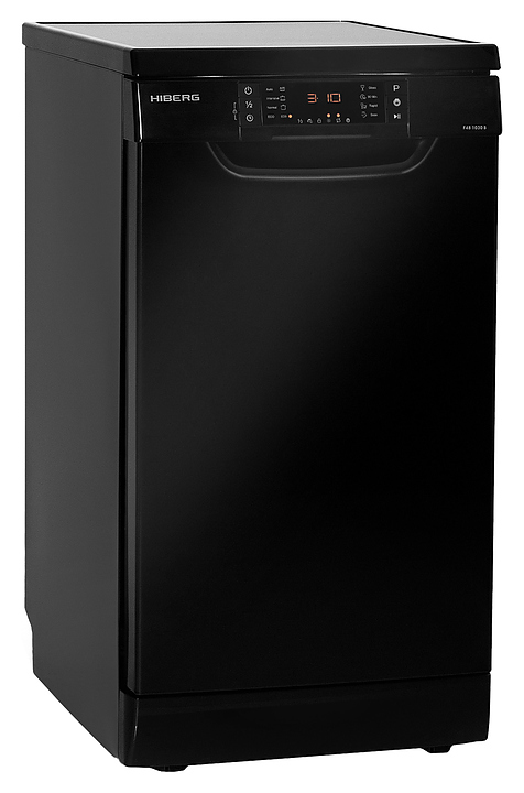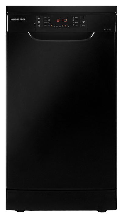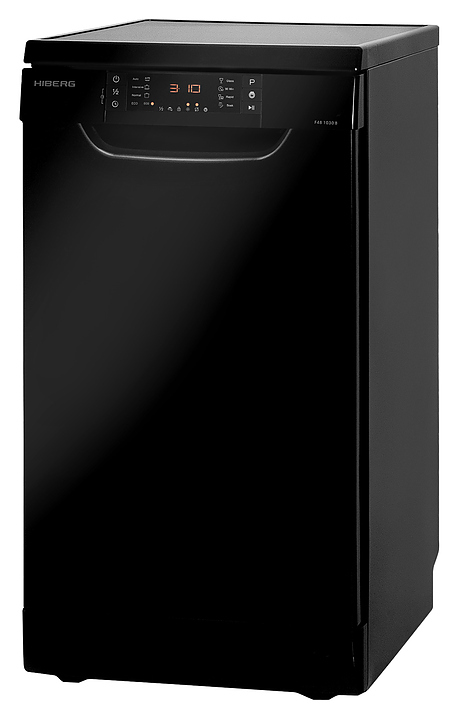 Посудомоечная машина Hiberg F48 1030 B предназначена для гигиенической обработки и последующей сушки различной посуды в гостиничных комплексах и домашних условиях. Модель оснащена камерой с откидной дверью с горизонтальной рукояткой, верхним и нижним моечными коромыслами, дозаторами моющих и ополаскивающих средств, устройством умягчения воды, кабелем питания с евровилкой, расположенной в верхней части фронта двери панелью управления с функциональными сенсорными клавишами, светодиодными сигнальными лампами и цифровым дисплеем с оранжевой подсветкой индикации. Внутренняя облицовка камеры и двери выполнена из высококачественной нержавеющей стали, корпус с поверхностью черного цвета, панель управления с черной глянцевой поверхностью.