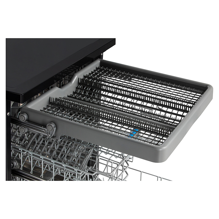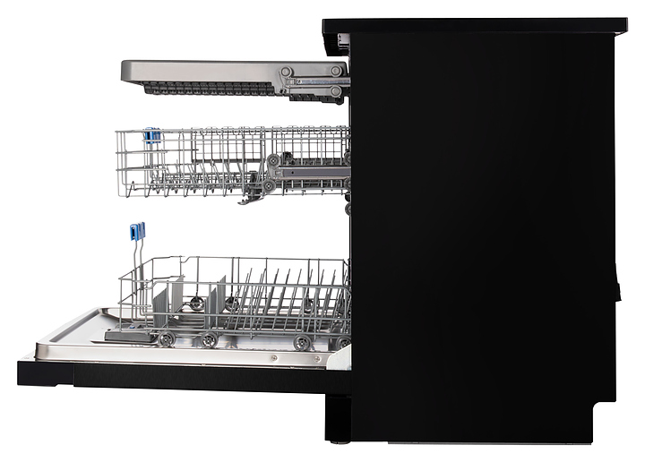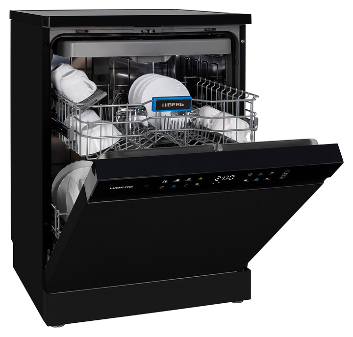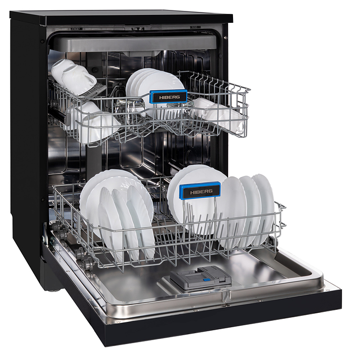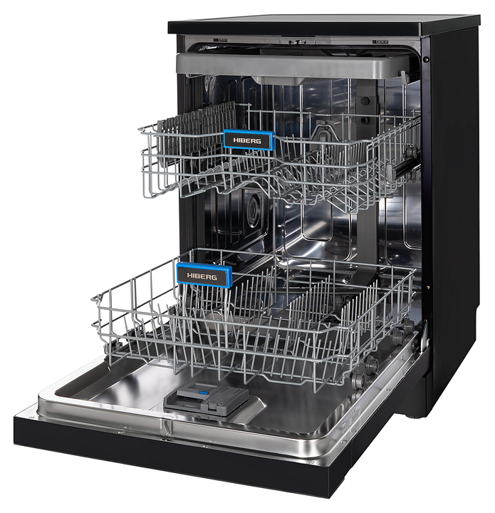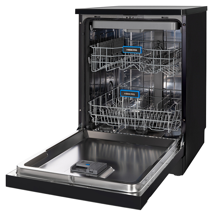 Посудомоечная машина Hiberg F68 1530 LB предназначена для гигиенической обработки и последующей сушки различной посуды в гостиничных комплексах и домашних условиях. Модель оснащена камерой с откидной дверью с длинной горизонтальной рукояткой, верхним разбрызгивателем, средним и нижним моечными коромыслами, дозаторами моющих и ополаскивающих средств, устройством умягчения воды, кабелем питания с евровилкой, расположенной в верхней части фронта двери панелью управления с функциональными сенсорными клавишами, цветными иконками программ, светодиодными сигнальными лампами и цифровым дисплеем с белой подсветкой индикации. Внутренняя облицовка камеры и двери выполнена из высококачественной нержавеющей стали, корпус с поверхностью черного цвета, панель управления с черной глянцевой поверхностью.
