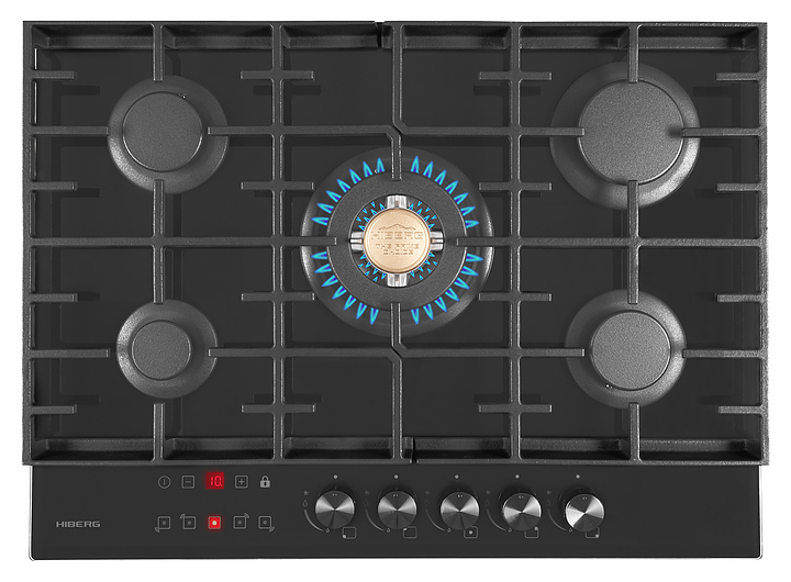 Газовая варочная панель Hiberg VM 7155 B предназначена для приготовления большого ассортимента блюд в домашних условиях. Модель оснащена 5 высококачественными конфорками различной мощности, 2 решетками, кабелем питания и фронтальной электромеханической панелью управления с 5 поворотными переключателями, сенсорной клавиатурой и светодиодным цифровым дисплеем с красной подсветкой индикации. Корпус выполнен из стали, рабочая поверхность – из высококачественного закаленного стекла черного цвета, решетки – из чугуна с черной поверхностью, цилиндрические ручки переключатей – из металла с черной поверхностью, фигурные ручки переключателей – из металла с поверхностью бронзового оттенка на черном основании. Комплектация: