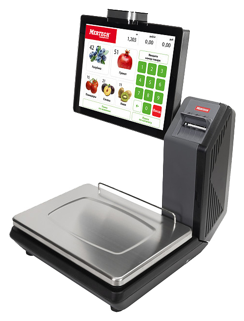 Настольные весы Mertech M-ER 725 PM-32.5 VISION-AI 15", USB, Ethernet, Wi-Fi используются в магазинах самообслуживания для взвешивания товара и печати этикеток, что уменьшает очереди и время обслуживания клиентов на кассе. Искусственный интеллект распознает товары, помещенные на весовую платформу. Модель оснащена сенсорным экраном с большими кнопками. Установка принтера в отдельном вертикальном корпусе позволяет уменьшить риск поломки механизма. Корпус выполнен из металла с порошковой краской, платформа - из нержавеющей стали. В комплект поставки входят кабель питания, шестигранный ключ, кабель RJ45 - RJ45 и платформа. Режимы работы: