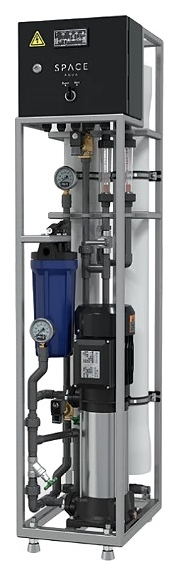 Установка обратного осмоса SpaceAqua Storm-10000 RO 0,50 используется на предприятиях общественного питания, торговли и промышленности различных направлений, в гостиничных комплексах, химчистках, автомойках, типографиях, животноводческих хозяйствах, а также загородных домах для высокоэффективной очистки исходной воды до рекомендуемого уровня. Обратный осмос – процесс, который заключается в фильтрации водных растворов под давлением, превышающем осмотическое, через полупроницаемую мембрану, пропускающую молекулы воды и задерживающую органические молекулы или ионы растворенных веществ, в процессе очистки поток разделяется на пермеат – очищенную воду для отвода в подготовленный резервуар и концентрат для сброса в канализацию или отвода на повторный цикл очистки. Рама системы выполнена из нержавеющей стали для возможности эксплуатации в условиях повышенной влажности, трубы – из поливинилхлорида, устойчивого к ультрафиолетовому излучению, кислотной и щелочной средам, напорные корпусы мембран – из композитных материалов.