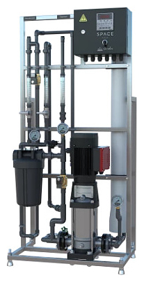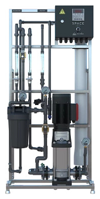 Установка обратного осмоса SpaceAqua Ocean-6004 0,25 используется на предприятиях общественного питания, торговли и промышленности различных направлений, в гостиничных комплексах, химчистках, автомойках, типографиях, животноводческих хозяйствах, а также загородных домах для высокоэффективной очистки исходной воды до рекомендуемого уровня. Обратный осмос – процесс, который заключается в фильтрации водных растворов под давлением, превышающем осмотическое, через полупроницаемую мембрану, пропускающую молекулы воды и задерживающую органические молекулы или ионы растворенных веществ, в процессе очистки поток разделяется на пермеат – очищенную воду для отвода в подготовленный резервуар и концентрат для сброса в канализацию или отвода на повторный цикл очистки. Рама системы выполнена из нержавеющей стали для возможности эксплуатации в условиях повышенной влажности, трубы – из поливинилхлорида, устойчивого к ультрафиолетовому излучению, кислотной и щелочной средам, напорные корпусы мембран – из композитных материалов, упаковка – из ориентированно стружечной плиты (ОСБ).
