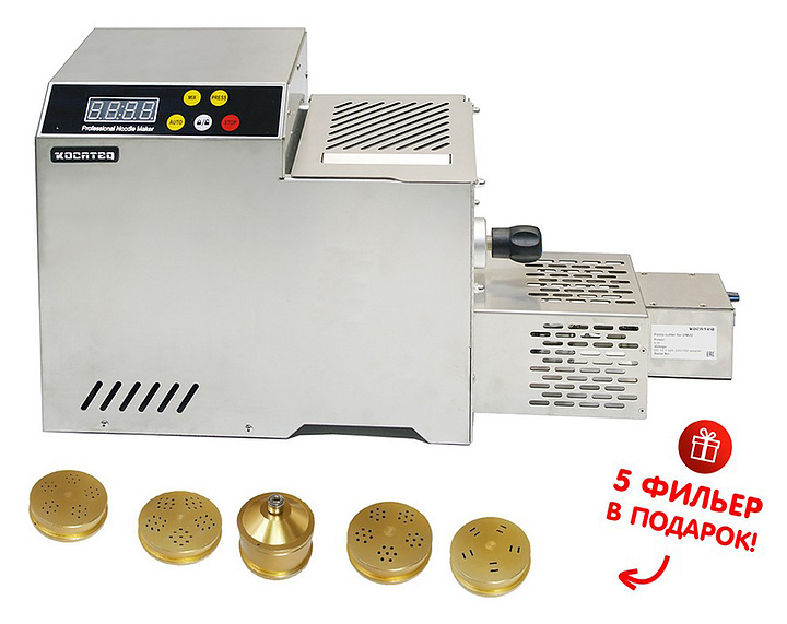 Экструдер для производства макаронных изделий Kocateq OMJ2 with cutter используется на предприятиях общественного питания и торговли, в пекарнях и кондитерских. Модель оснащена сенсорной панелью управления. Поверхности, контактирующие с продуктами питания выполнены из нержавеющей стали AISI 304. В комплект поставки входят нож автоподрезки OMJ2 Cutter , 5 фильер из алюминия с бронзовым покрытием для приготовления Spaghetti шириной 1 и 1,5 мм, Tagliolini 1,5*1 мм, Tagliatelle 4,5*1 мм, листа теста Lasagne шириной до 170 мм, мерный стакан, ключ для простой замены фильер. Внимание! Экструдер продается только в комплекте с ножом автоподрезки OMJ 2 Cutter Особенности: