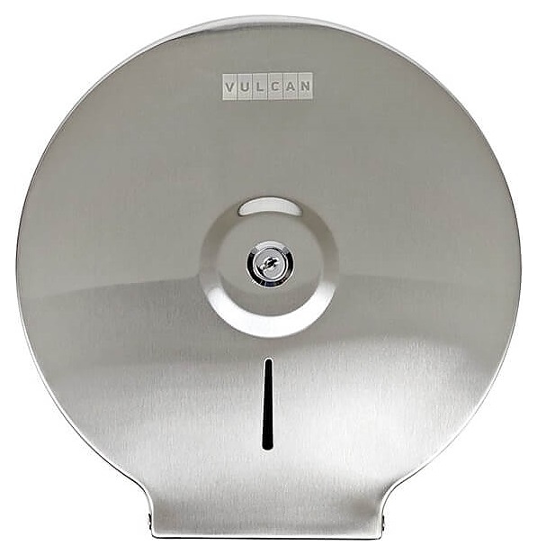 Диспенсер Vulcan 11A предназначен для гигиеничного размещения рулонной туалетной бумаги в санитарных узлах гостиниц, предприятий общественного питания и торговли, медицинских учреждений и других мест массового пребывания. Модель оснащена откидной крышкой с замком и окошком для визуального контроля количества бумаги. Корпус цилиндрической формы изготовлен из нержавеющей стали марки AISI 304 с матовой серебристой поверхностью. В комплект поставки входят ключ, шурупы и дюбели. Особенности: