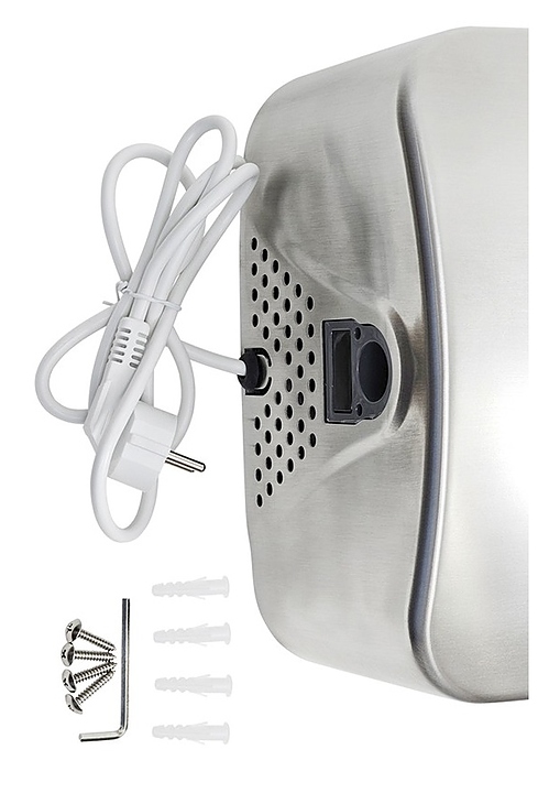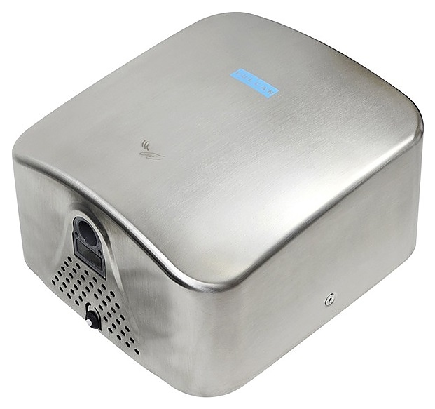 Автоматическая сушилка Vulcan 02A используется в туалетных комнатах торговых центров, гостиниц, аэропортов, вокзалов, предприятий общественного питания, различных учреждений и других мест массового пребывания для сушки рук после мытья. Модель оснащена кабелем питания с вилкой. Лицевая панель корпуса обтекаемой формы выполнена из нержавеющей стали марки AISI 304 с матовой серебристой поверхностью. В комплект поставки входят шурупы, дюбели и шестигранный ключ. Особенности: