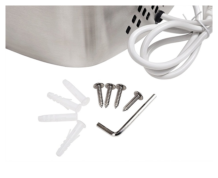 Автоматическая сушилка Vulcan 04A используется в туалетных комнатах торговых центров, гостиниц, аэропортов, вокзалов, предприятий общественного питания, различных учреждений и других мест массового пребывания для сушки рук после мытья. Модель оснащена кабелем питания с вилкой. Лицевая панель корпуса обтекаемой формы выполнена из нержавеющей стали марки AISI 304 с матовой серебристой поверхностью. В комплект поставки входят шурупы, дюбели и шестигранный ключ. Особенности: