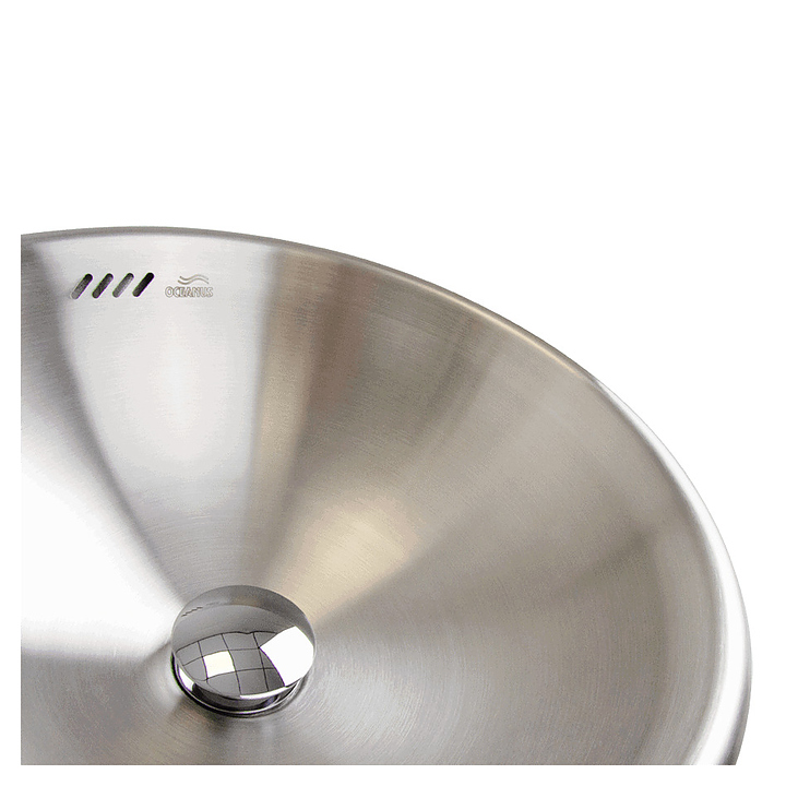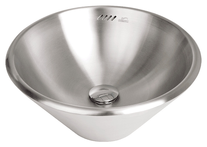 Накладной рукомойник Oceanus 3-017.1 предназначен для мытья рук на предприятиях общественного питания и торговли. Модель в форме усеченного конуса оснащена чашей круглого сечения с плавно расширенным бортом. Изделие выполнено из высококачественной нержавеющей стали марки AISI 304 серебристого оттенка с матовой поверхностью. В комплект поставки входят слив и сифон. Особенности: