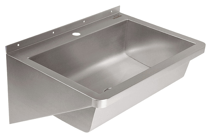 Настенный рукомойник Oceanus 3-035.1 предназначен для мытья рук на предприятиях общественного питания и торговли. Модель оснащена раковиной прямоугольной формы, отверстием под смеситель и задним бортом. Изделие выполнено из высококачественной нержавеющей стали марки AISI 304 серебристого оттенка с матовой поверхностью. В комплект поставки входят слив и крепления. Особенности: