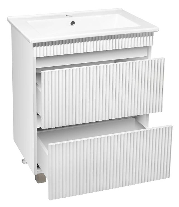 Тумба под раковину Runo Модена 65 выполнена в современном стиле и идеально впишется в интерьер любой ванной комнаты. Напольная конструкция обеспечивает легкий монтаж и не требует специального ремонта в помещении. Тумба оснащена волнистыми рифлеными фасадами и 2 выдвижными ящиками на шариковых направляющих. Корпус выполнен из ЛДСП, фасад - из МДФ с пленкой ПВХ. Тумба используется с раковиной Kirovit Оскар 65. Внимание! На фото модель другого размера с раковиной, которая в комплект поставки не входит и приобретается отдельно. Внимание! Информация о товарах, размещенная на сайте, не является публичной офертой, определяемой положениями Части 2 Статьи 437 Гражданского кодекса Российской Федерации. Производители вправе вносить изменения в технические характеристики, внешний вид и комплектацию товаров без предварительного уведомления. Уточняйте характеристики у наших менеджеров перед оформлением заказа. |