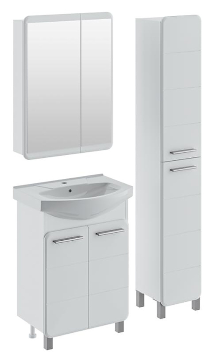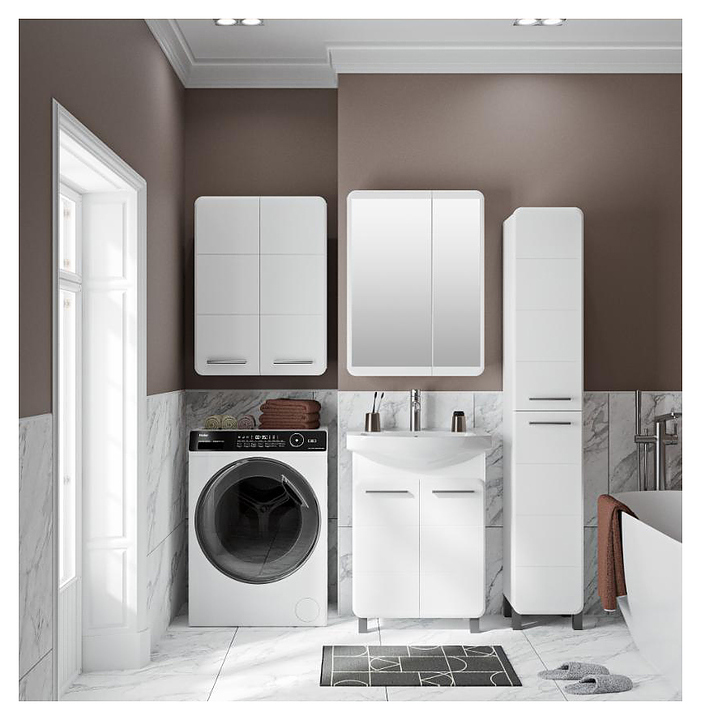 Тумба под раковину Runo Эрика 60 выполнена в современном стиле и идеально впишется в интерьер любой ванной комнаты. Напольная конструкция обеспечивает легкий монтаж и не требует специального ремонта в помещении. Тумба оснащена 2 распашными дверцами и полкой внутри. Корпус выполнен из ЛДСП, фасад - из МДФ с пленкой ПВХ. Тумба используется с раковиной Runo Rosa Элеганс 60. В комплект поставки входят 2 ручки, петли со встроенным доводчиком, 2 хромированные и 2 пластиковые ножки. Дополнительные характеристики: