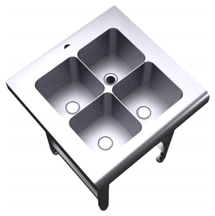 Напольная моечная ванна Oceanus 7-005.1 предназначена для мытья различного инвентаря на предприятиях общественного питания и торговли. Модель оснащена 4 раковинами прямоугольного сечения, невысоким фартуком с радиальным гибом с фронтальной стороны, отверстием под смеситель и 4 опорами. Изделие выполнено из высококачественной нержавеющей стали марки AISI 304 серебристого оттенка с матовой поверхностью. Особенности:
