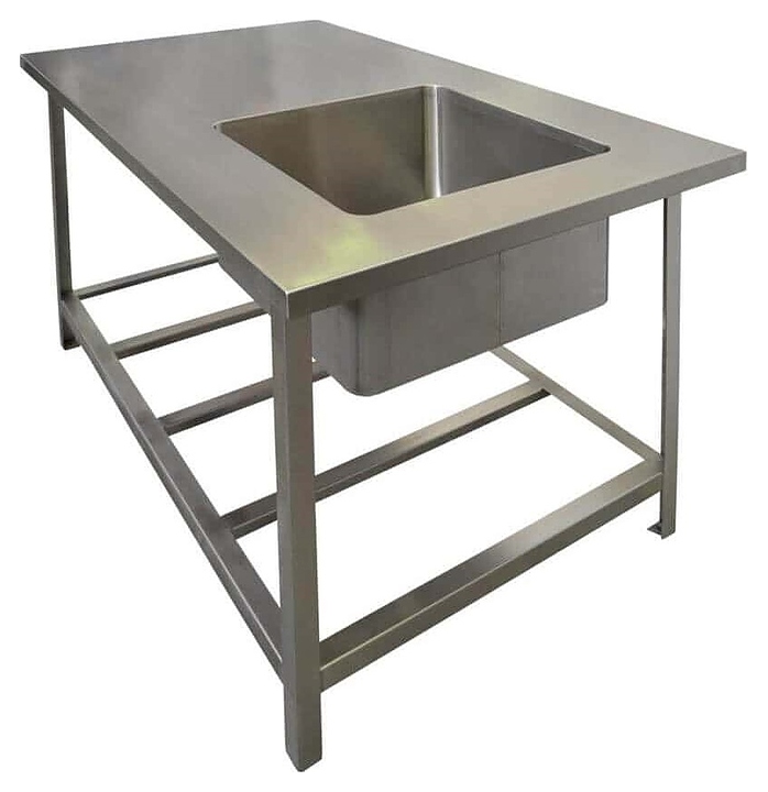 Напольная моечная ванна Oceanus 7-006.3 предназначена для мытья различного инвентаря на предприятиях общественного питания и торговли. Модель оснащена раковиной прямоугольного сечения слева, рабочей поверхностью справа, решетчатой полкой снизу и 4 опорами. Изделие выполнено из высококачественной нержавеющей стали марки AISI 304 серебристого оттенка с матовой поверхностью. Особенности: