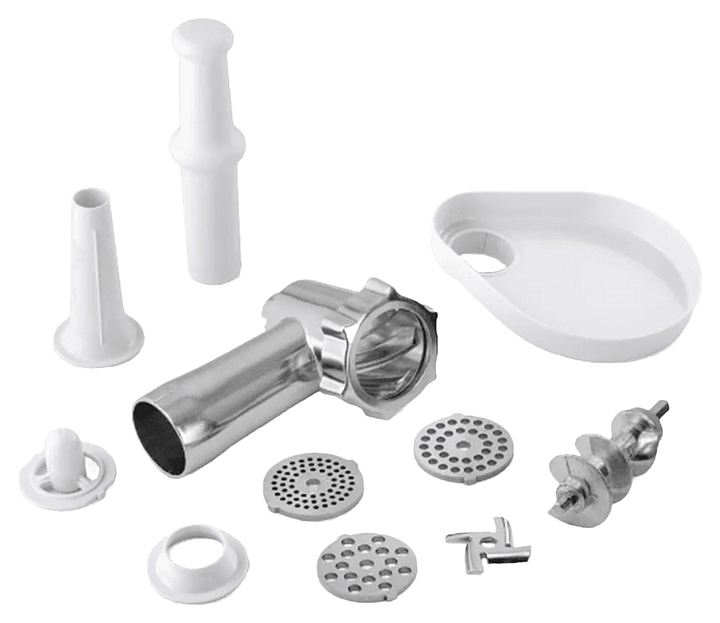 Электрическая мясорубка Vatten VG25/800/W используется в домашних условиях для измельчения мяса и рыбы при производстве фарша. Модель оснащена электродвигателем, кабелем питания с вилкой и 3-позиционным переключателем колыбельного типа. Корпус выполнен из металла с белой поверхностью, шестерни – из металла. Комплектация: