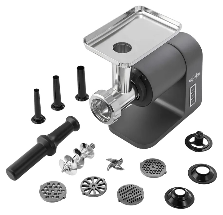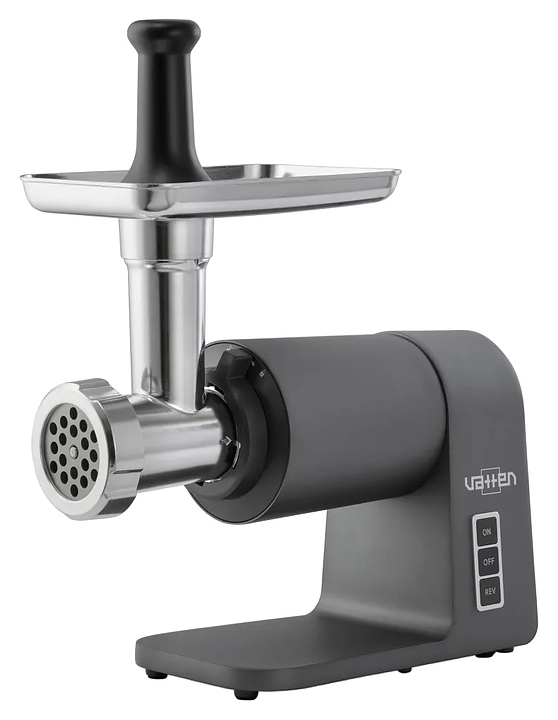 Электрическая мясорубка Vatten VG191/2000/M используется в домашних условиях для измельчения мяса и рыбы при производстве фарша. Модель оснащена мощным электродвигателем, кабелем питания с вилкой и кнопочной панелью управления. Корпус выполнен из металла с черной поверхностью, шестерни и редуктор – из металла. Комплектация: