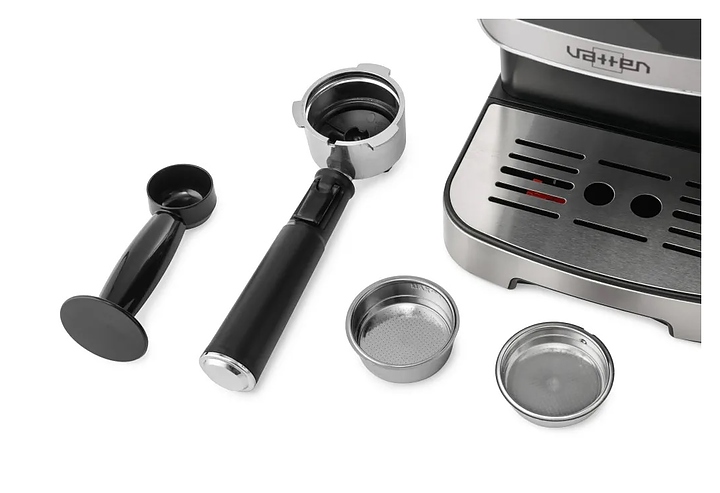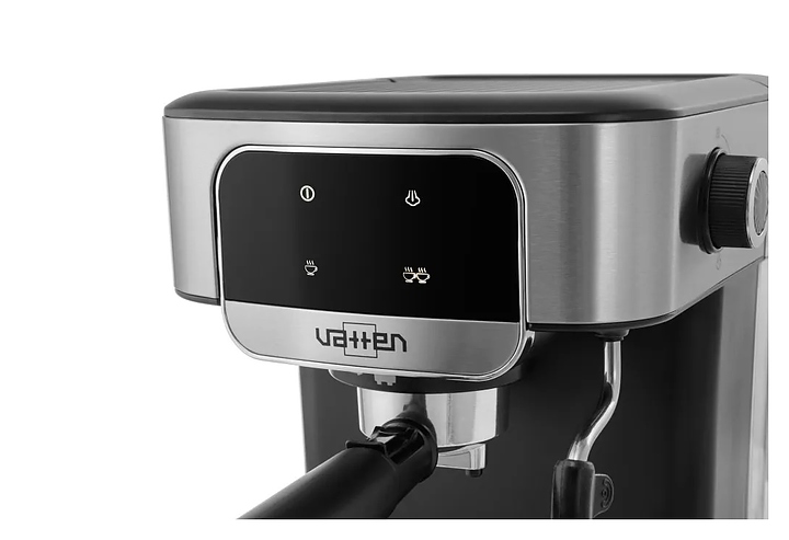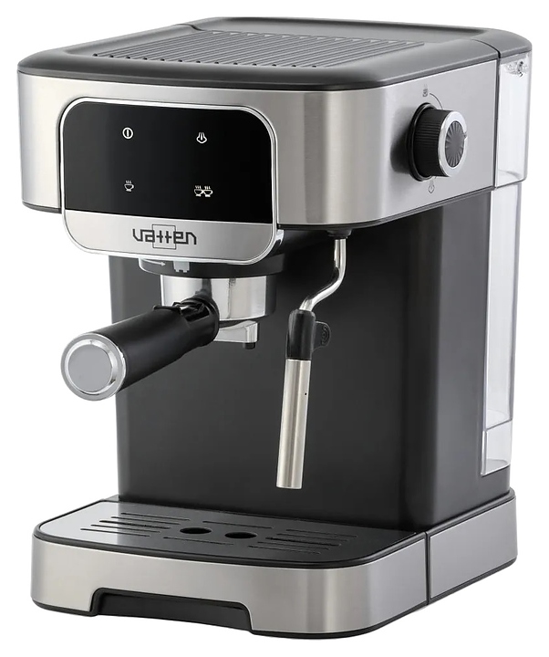 Рожковая эспрессо кофеварка Vatten VK615/1200/N используется для приготовления кофе и напитков на его основе в офисах, гостиницах и домашних условиях. Модель оснащена помпой, капучинатором в виде поворотной трубки с паровой насадкой, подставкой для чашек, кабелем питания с вилкой, электромеханической панелью управления с функциональными сенсорными клавишами на фронтальной стенке и 3-позиционным поворотным переключателем на боковой стенке. Корпус прямоугольно ориентированной формы выполнен из нержавеющей стали с серебристой поверхностью и черного пластика, панель управления черного цвета. Комплектация: