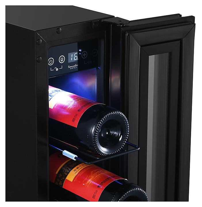 Винный шкаф Temptech Sommelier SOMX15SRB-24 предназначен для охлаждения, хранения и демонстрации бутилированного вина в отелях, винных магазинах, на предприятиях общественного питания и торговли. Модель оснащена сенсорной панелью с дисплеем для регулировки температуры и освещения, 5 выдвижными полками, дверью со встроенной ручкой и белой светодиодной подсветкой. Дверца выполнена из трехслойного стекла с защитой от УФ-лучей, передняя панель - из черного стекла, полки - из дерева, декорированного накладками черного цвета. Особенности: