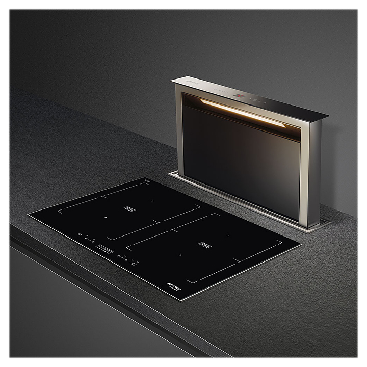 Встраиваемая кухонная вытяжка SMEG KDD60VXE-3 предназначена для очистки воздуха от продуктов горения, копоти и запахов в процессе приготовления пищи путем принудительной вентиляции в домашних условиях. Модель оснащена вентилятором с электродвигателем, кабелем питания с вилкой, сенсорной панелью управления и цифровым дисплеем с красной подсветкой индикации. Прибор монтируется в столешницу рядом с варочной поверхностью и имеет компактную выдвижную конструкцию. Корпус выполнен из высококачественной нержавеющей стали с матовой серебристой поверхностью, верхняя лицевая и фронтальная панели прямоугольной формы выполнены из черного стекла, жироулавливающий фильтр – из алюминия. В комплект поставки входят набор монтажных креплений, адаптер воздуховода, инструкция по эксплуатации, гарантийный талон и заводская упаковка. Особенности: