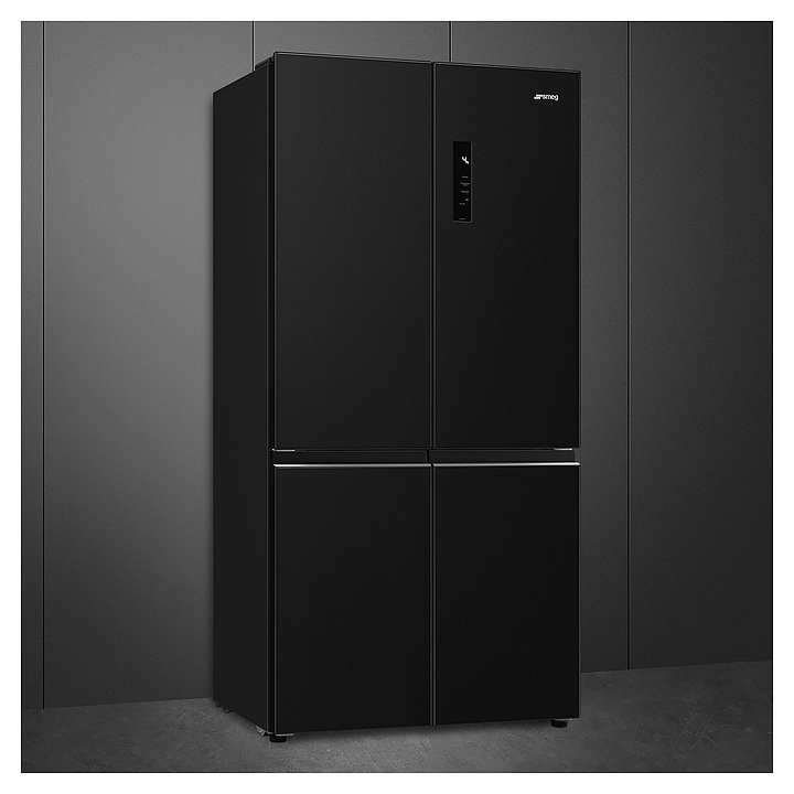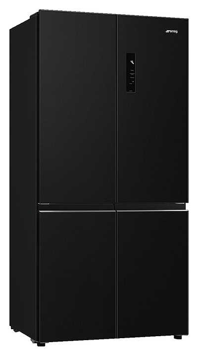 Холодильник SMEG FQI60KD типа Side-by-Syde предназначен для охлаждения, заморозки, кратковременного и длительного хранения пищевых продуктов и напитков в гостиницах, офисах и домашних условиях. Модель оснащена холодильной и 2 морозильными камерами, 4 распашными дверьми, кабелем питания с евровилкой, расположенной на фронте верхней левой двери панелью управления с сенсорными функциональными клавишами и светодиодным монохромным дисплеем с белой подсветкой индикации. Двери выполнены из материала с поверхностным эффектом нержавеющей стали с покрытием оттенка черная сталь и обработкой против отпечатков пальцев, боковины – из стали, облицовка интерьера – из белого пластика, плоские полки – из безопасного закаленного стекла, ящики, лотки и навесные полки – из прочного полимера, окантовка полок и ящиков – из металлического профиля с сатинированной серебристой поверхностью, накладные литеры логотипа – из пластика с серебристой поверхностью.