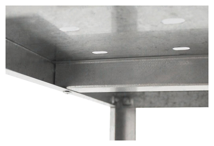 Производственный стол Mecon Base СПРб предназначен для разделывания и обработки пищевых продуктов, а также в качестве вспомогательной поверхности для кухонного оборудования на предприятиях пищевой промышленности, общественного питания и торговли. Модель оснащена усиленной перфорированной полкой и регулируемыми по высоте полиамидными опорами со стальными подпятниками. Каркас выполнен из уголка оцинкованной стали с подгибами, столешница - из шлифованной пищевой нержавеющей стали AISI 430 с усилением подложкой из ДСП, полка - из оцинкованной стали. Особенности: