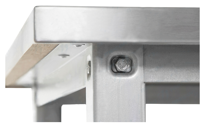 Производственный стол Mecon Base СПРб предназначен для разделывания и обработки пищевых продуктов, а также в качестве вспомогательной поверхности для кухонного оборудования на предприятиях пищевой промышленности, общественного питания и торговли. Модель оснащена усиленной перфорированной полкой и регулируемыми по высоте полиамидными опорами со стальными подпятниками. Каркас выполнен из уголка оцинкованной стали с подгибами, столешница - из шлифованной пищевой нержавеющей стали AISI 430 с усилением подложкой из ДСП, полка - из оцинкованной стали. Особенности: