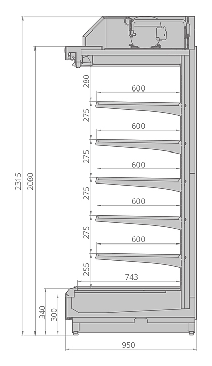 Холодильная горка Brandford CRONOX 2080.950 250 предназначена для демонстрации, охлаждения и кратковременного хранения гастрономических товаров на предприятиях торговли. Модель оснащена 5 полками с регулируемым наклоном и энергосберегающей подсветкой, ценникодержателями, верхним и вертикальным освещением кабинета. Улучшенная эргономика увеличивает полезный объем и позволяет загрузить больше продуктов. Минималистичные нижняя и верхняя фронтальные панели и ультратонкие профили максимально расширяют фронтальную экспозицию холодильной витрины. Система Air Connect позволяет подключить витрину к системе вентиляции помещения, благодаря чему повышается производительность работы компрессора и отводятся излишки тепла из торгового зала. Боковины в комплект поставки не входят и приобретаются отдельно. Особенности: