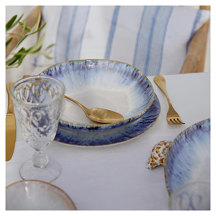 Тарелка Costa Nova GOP271-RIA(GOP271-00918V) коллекции Brisa используется в барах, ресторанах, на других предприятиях общественного питания и в домашних условиях для подачи различных блюд. Емкость овальной формы оснащена плавно расширенным к кромке бортом. Изделие выполнено из высококачественной керамики с текстурной поверхностью в голубых тонах Ria Blue и коричневым кантом на кромке. Цена указана за 1 шт. Особенности: