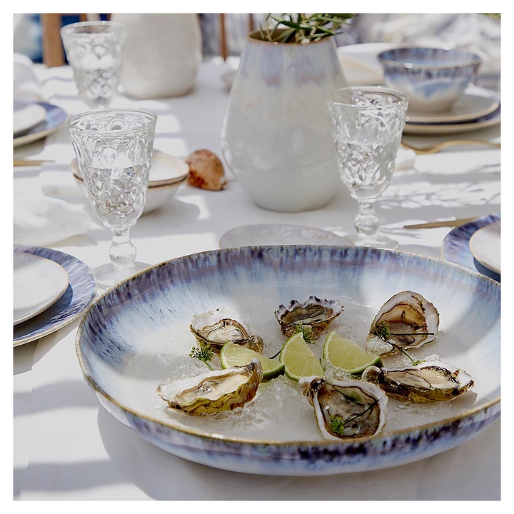 Салатник Costa Nova GOS161-RIA(GOS161-00918W) коллекции Brisa используется в барах, ресторанах, на других предприятиях общественного питания и в домашних условиях для подачи салатов. Емкость овальной формы оснащена плавно расширенным к кромке бортом. Изделие выполнено из высококачественной керамики с текстурной поверхностью в голубых тонах Ria Blue и коричневым кантом на кромке. Цена указана за 1 шт. Особенности: