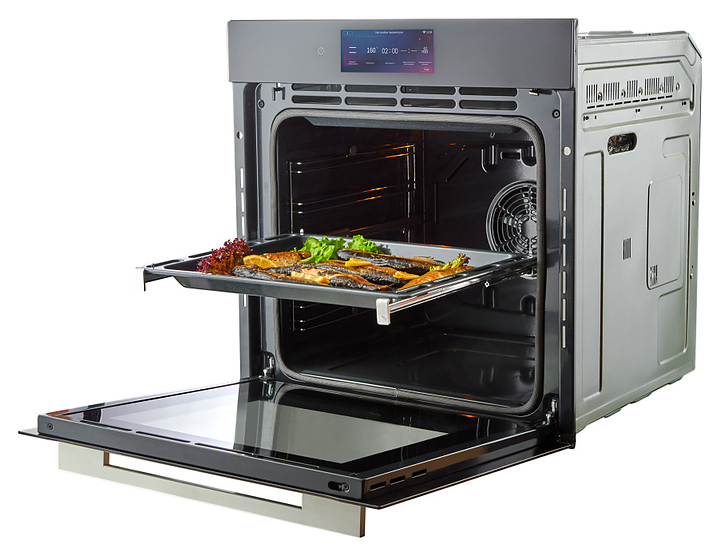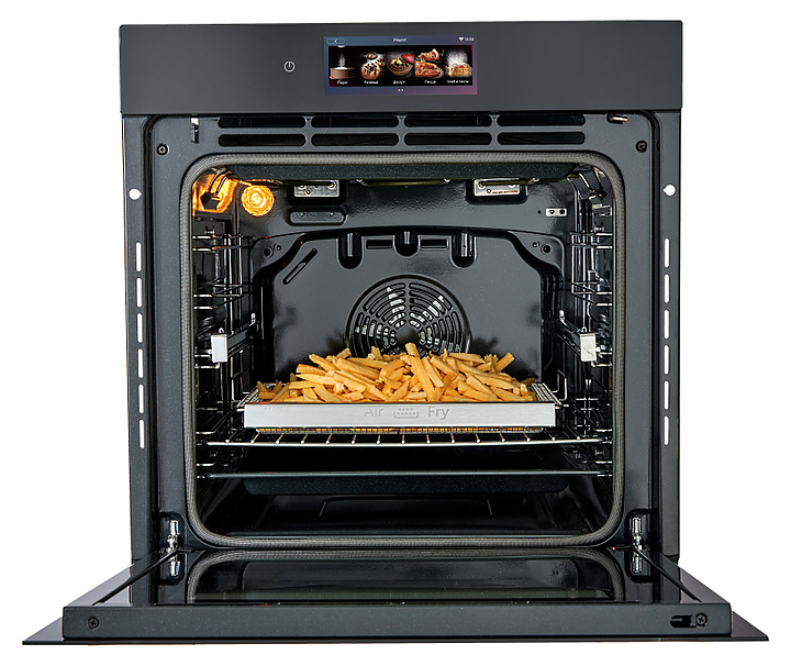 Встраиваемый электрический духовой шкаф Graude BMP 60.4 S предназначен для приготовления большого ассортимента блюд в домашних условиях. Модель оснащена рабочей камерой с верхним и нижним нагревательными элементами, грилем, расположенными в задней стенке кольцевым нагревателем и вентилятором, 2 боковыми стойками с 5 уровнями направляющих для противней, откидной дверью со смотровым окном и уплощенной горизонтальной рукояткой, кабелем питания, сенсорным TFT-дисплеем управления и индикации с полноцветными изображениями высокой четкости, символьными, текстовыми и цифровыми сегментами. Корпус выполнен из высококачественной стали, фронт с черным матовым покрытием и частичным внешним остеклением без винтового крепежа, рукоятка – из алюминия с поверхностью цвета нержавеющей стали, глубокий противень – из эмалированной стали, решетка, решетчатый противень, прихват, боковые стойки и направляющие с хромированной поверхностью.