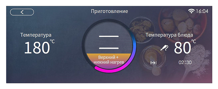 Multi Cooking: нагрев верхнего, нижнего и кольцевого элементов с вентиляцией для равномерного распределения тепла и одновременного приготовления блюд на нескольких уровнях без смешивания запахов