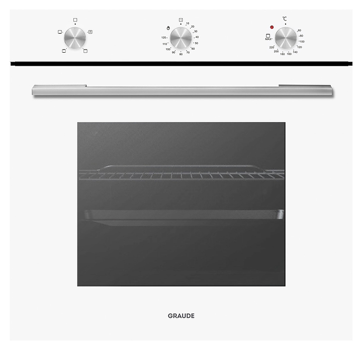 Встраиваемый электрический духовой шкаф Graude BE 60.0 W предназначен для приготовления большого ассортимента блюд в домашних условиях. Модель оснащена рабочей камерой с верхним и нижним нагревательными элементами, грилем, расположенным в задней стенке вентилятором, 2 боковыми стойками с 4 уровнями направляющих для противней, откидной дверью со смотровым окном и уплощенной горизонтальной рукояткой, кабелем питания и электромеханической панелью управления с 3 поворотными переключателями. Корпус выполнен из высококачественной стали, фронт с покрытием белого цвета и полным остеклением без винтового крепежа, рукоятка и переключатели – из алюминия с серебристой поверхностью, противень – из эмалированной стали, решетка, боковые стойки и направляющие с хромированной поверхностью. Комплектация: