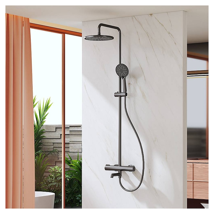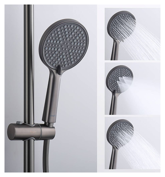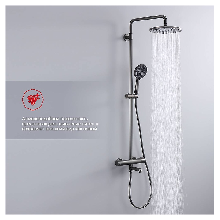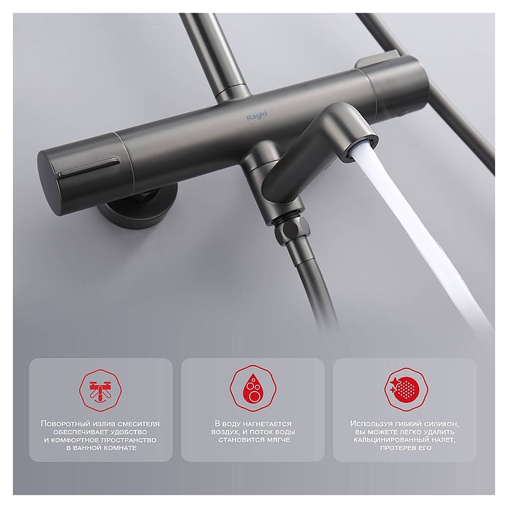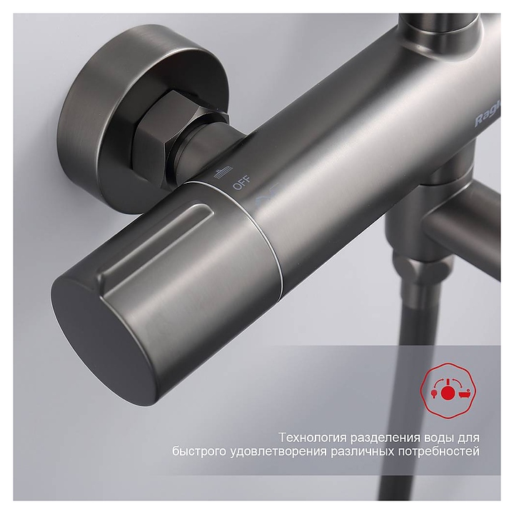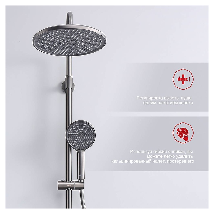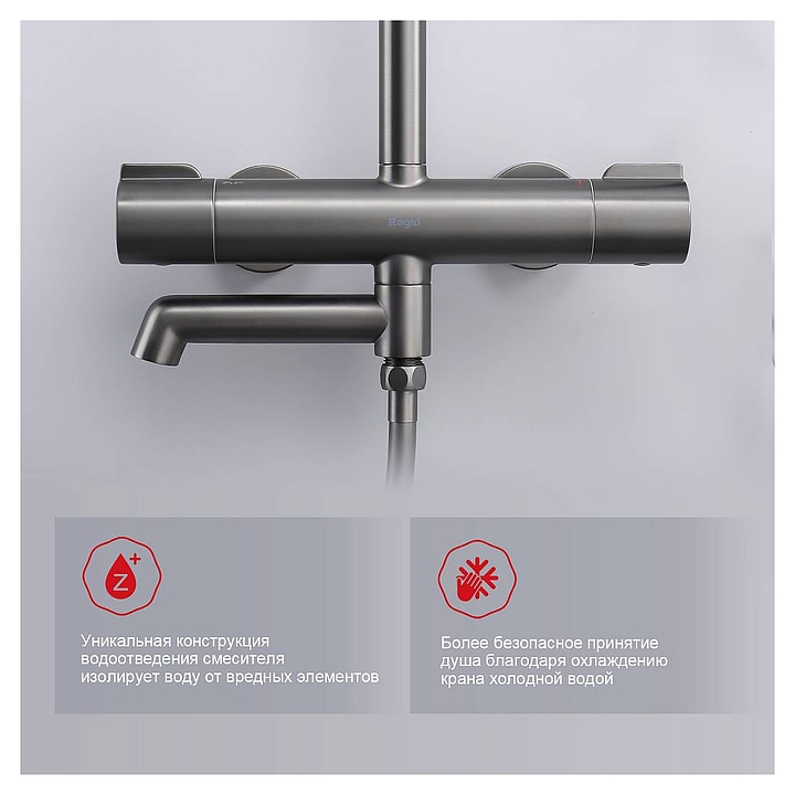 Душевая система Raglo R20.26.09 предназначена для подачи горячей и холодной воды в ванных помещениях. Модель оснащена регулируемой по высоте душевой штангой, круглыми верхним душем и ручной лейкой. Термостатический картридж обеспечивает подачу воды заданной температуры, что исключает ожоги. Излив оснащен аэратором, который создает мягкую струю без брызг. Изделие выполнено из высококачественной латуни, отличающейся прочностью, долговечностью и устойчивостью к перепадам температур, шланг - из ПВХ, аэратор - из силикона. В комплект поставки входят верхний душ, душевая штанга с держателем лейки, ручной душ, смеситель и шланг. Особенности: