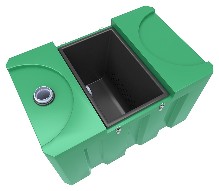 Жироуловитель COUNTRY PLAST Универсал - 100 предназначен для очистки сточных вод от жиров растительного и животного происхождения и предотвращения их попадания в систему канализации с целью предупреждения образования засоров в кафе, ресторанах, столовых, на других предприятиях общественного питания и торговли. Модель оснащена легкосъемным внутренним лотком для сбора крупного мусора. Монолитный корпус выполнен из линейного полиэтилена низкого давления высокой плотности. В комплект поставки входит инструкция по эксплуатации. Особенности: