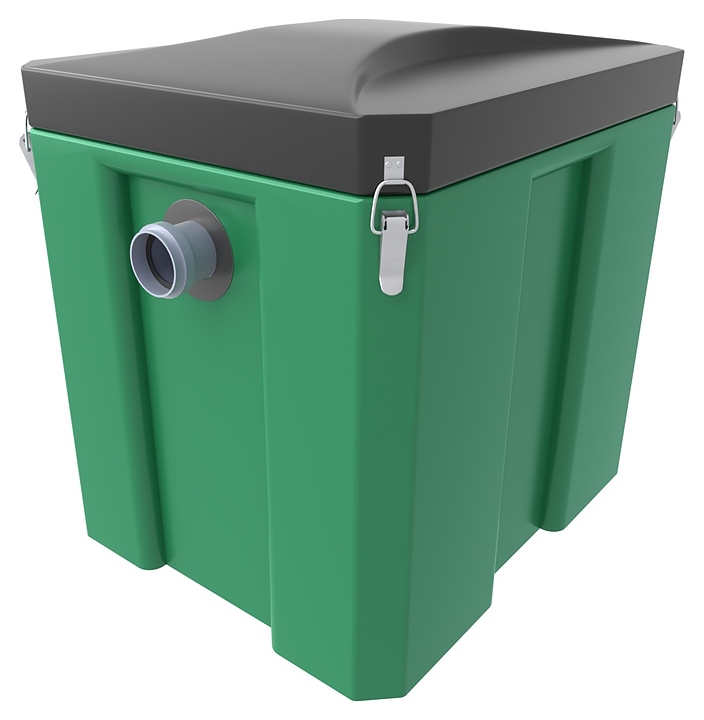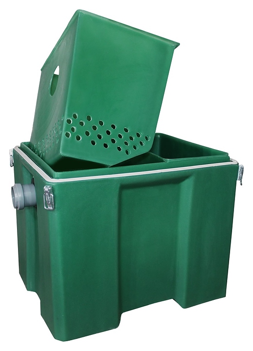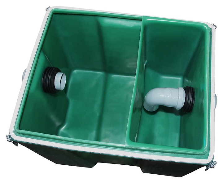 Жироуловитель COUNTRY PLAST Профи - 60 предназначен для очистки сточных вод от жиров растительного и животного происхождения и предотвращения их попадания в систему канализации с целью предупреждения образования засоров в кафе, ресторанах, столовых, на других предприятиях общественного питания и торговли. Модель оснащена 2 легкосъемными внутренними лотками для сбора крупного мусора и более эффективной фильтрации. Монолитный корпус выполнен из линейного полиэтилена низкого давления высокой плотности. В комплект поставки входит инструкция по эксплуатации. Особенности: