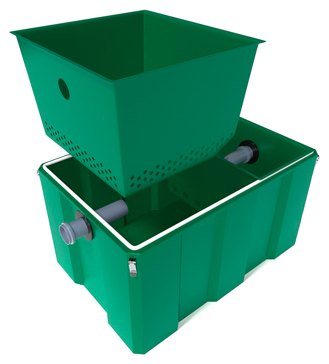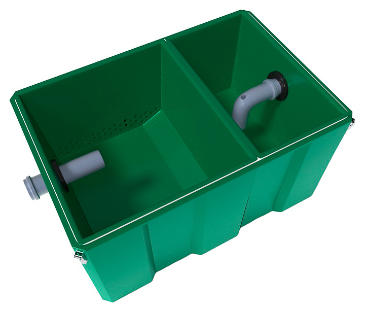 Жироуловитель COUNTRY PLAST Профи - 80 предназначен для очистки сточных вод от жиров растительного и животного происхождения и предотвращения их попадания в систему канализации с целью предупреждения образования засоров в кафе, ресторанах, столовых, на других предприятиях общественного питания и торговли. Модель оснащена 2 легкосъемными внутренними лотками для сбора крупного мусора и более эффективной фильтрации. Монолитный корпус выполнен из линейного полиэтилена низкого давления высокой плотности. В комплект поставки входит инструкция по эксплуатации. Особенности: