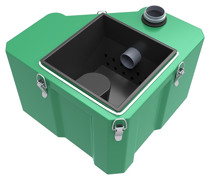 Жироуловитель COUNTRY PLAST Угловой 20-1 предназначен для очистки сточных вод от жиров растительного и животного происхождения и предотвращения их попадания в систему канализации с целью предупреждения образования засоров в кафе, ресторанах, столовых, на других предприятиях общественного питания и торговли. Модель оснащена легкосъемным внутренним лотком для сбора крупного мусора. Монолитный корпус выполнен из линейного полиэтилена низкого давления высокой плотности. В комплект поставки входит инструкция по эксплуатации. Особенности: