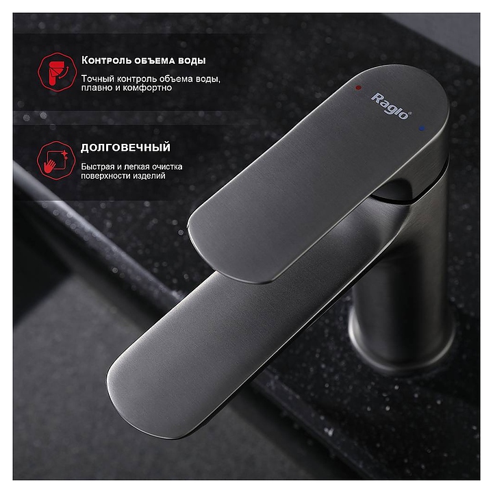 Смеситель для раковины Raglo R03.10.09 предназначен для подачи горячей и холодной воды в ванных помещениях. Модель оснащена керамическим картриджем, который обеспечивает плавный ход рычага смесителя, контроль и точность при выборе напора и температуры воды. Встроенный аэратор создает мягкую струю без брызг. Корпус выполнен из высококачественной латуни, отличающейся прочностью, долговечностью и устойчивостью к перепадам температуры, аэратор - из силикона. В комплект поставки входят смеситель и подводка. Особенности: